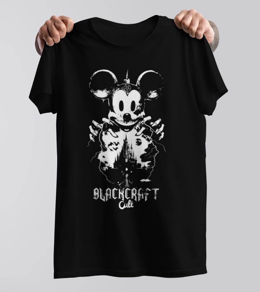 Blackcraft Cult Mouse Gothic Castle Scene Shirt made from 100% pre-shrunk ring-spun cotton, unisex regular fit based on U.S. standard sizing. The shirt is designed, cut, sewn, and printed in the United States. Available in sizes S-5XL.