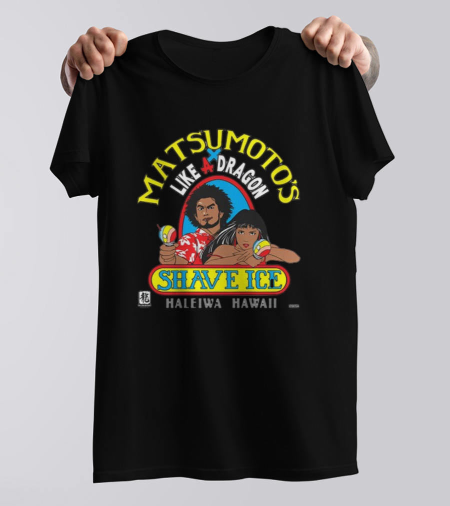 Matsumoto's Like A Dragon Shave Ice Haleiwa Hawaii Colorful Characters with Shave Ice Shirt made from 100% pre-shrunk ring-spun cotton, unisex regular fit based on U.S. standard sizing. The shirt is designed, cut, sewn, and printed in the United States. Available in sizes S-5XL.