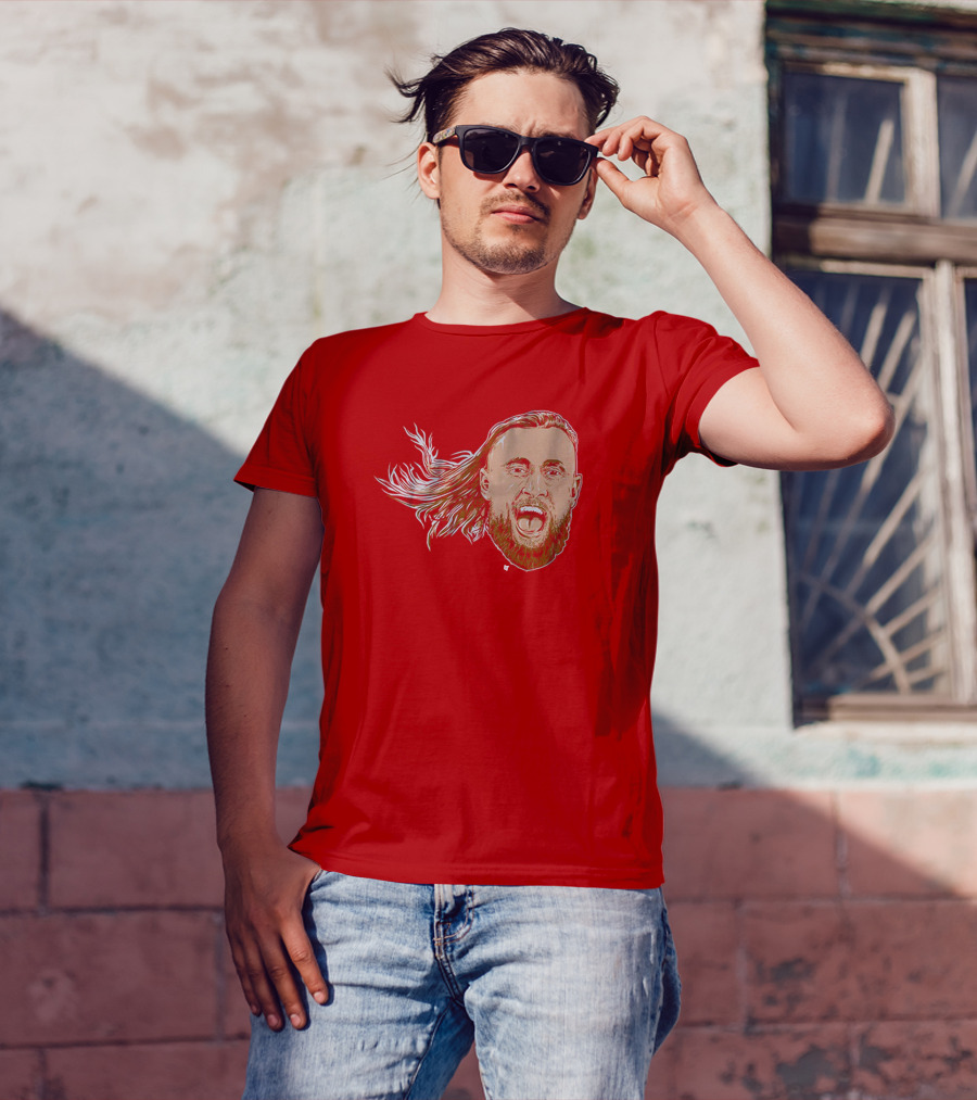 george kittle swag head 49ers red beard roaring face Shirt made from 100% pre-shrunk ring-spun cotton, unisex regular fit based on U.S. standard sizing. The shirt is designed, cut, sewn, and printed in the United States. Available in sizes S-5XL.