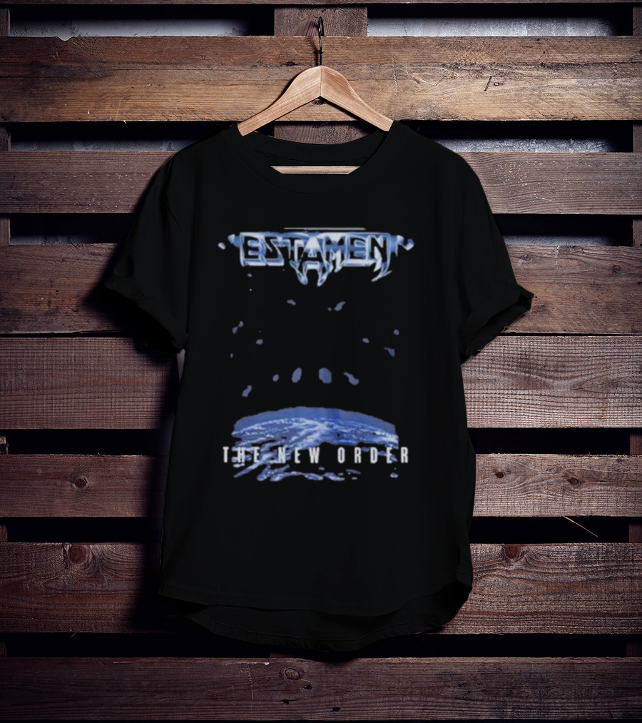 Testament The New Order Album Cover Art Blue Earth and Liquid Drops Shirt made from 100% pre-shrunk ring-spun cotton, unisex regular fit based on U.S. standard sizing. The shirt is designed, cut, sewn, and printed in the United States. Available in sizes S-5XL.