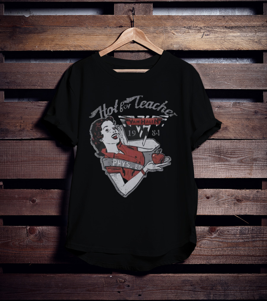 Hot For Teacher Van Halen 1984 Phys Ed Shirt made from 100% pre-shrunk ring-spun cotton, unisex regular fit based on U.S. standard sizing. The shirt is designed, cut, sewn, and printed in the United States. Available in sizes S-5XL.