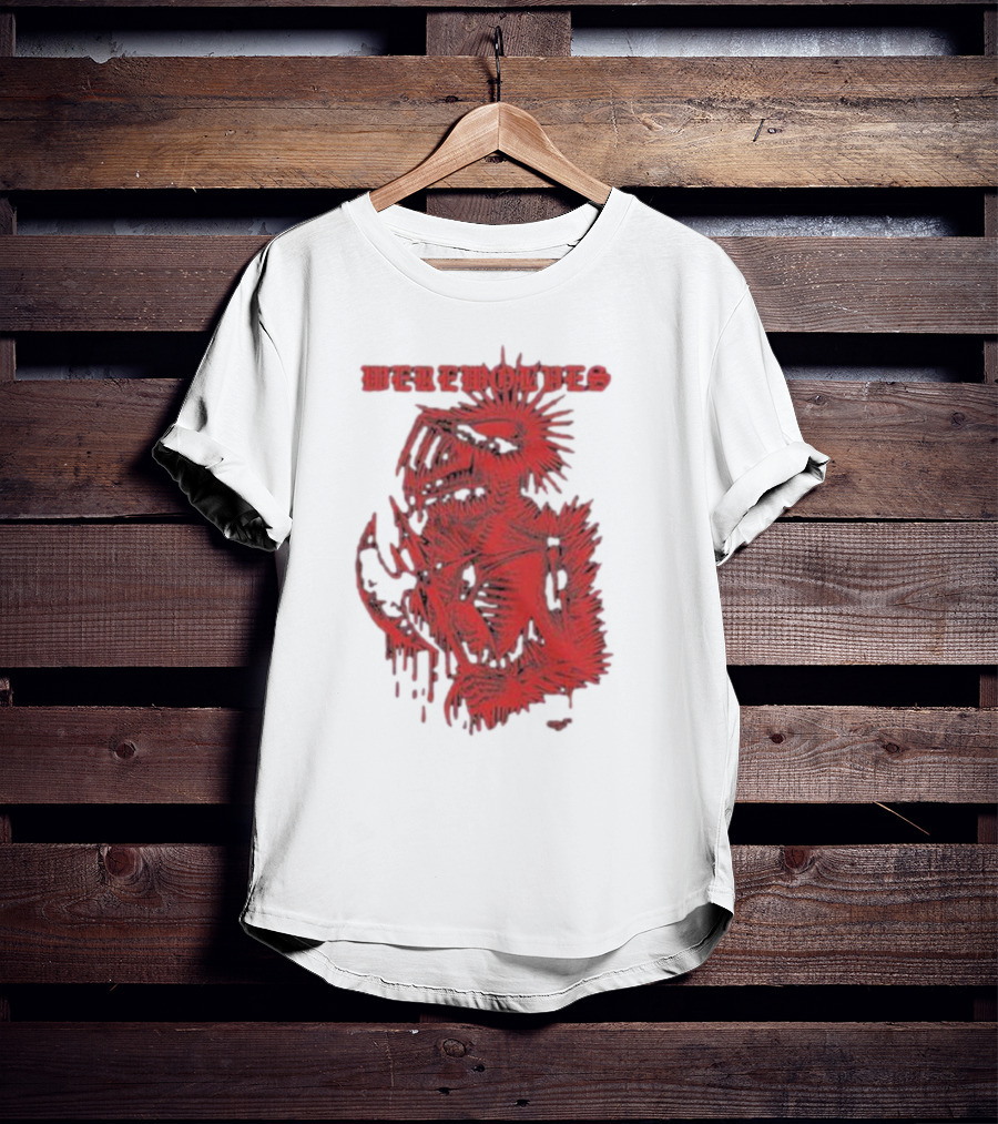 Werewolves Death Metal Red Skeleton Creature Shirt made from 100% pre-shrunk ring-spun cotton, unisex regular fit based on U.S. standard sizing. The shirt is designed, cut, sewn, and printed in the United States. Available in sizes S-5XL.