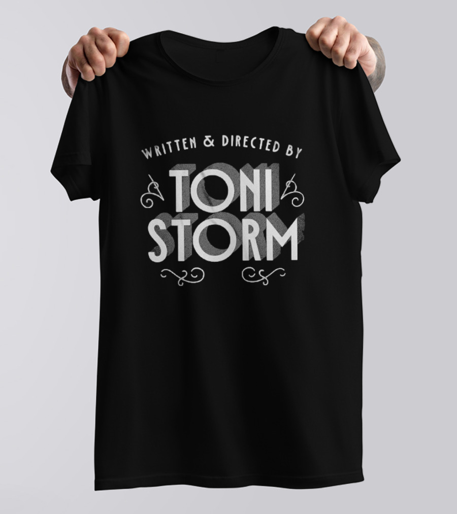All Elite Wrestling Written and Directed by Toni Storm Shirt made from 100% pre-shrunk ring-spun cotton, unisex regular fit based on U.S. standard sizing. The shirt is designed, cut, sewn, and printed in the United States. Available in sizes S-5XL.