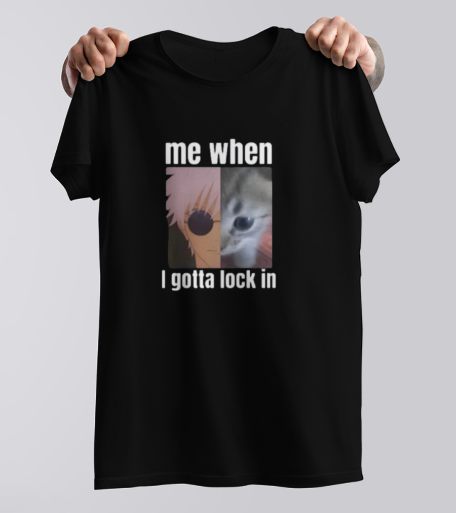 Me When I Gotta Lock In Anime Character And Cat Face Edit T-Shirt