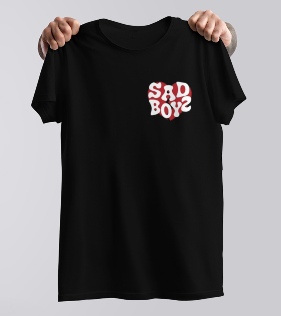 Sad Boyz Heart Logo Red and White Contrast Shirt made from 100% pre-shrunk ring-spun cotton, unisex regular fit based on U.S. standard sizing. The shirt is designed, cut, sewn, and printed in the United States. Available in sizes S-5XL.