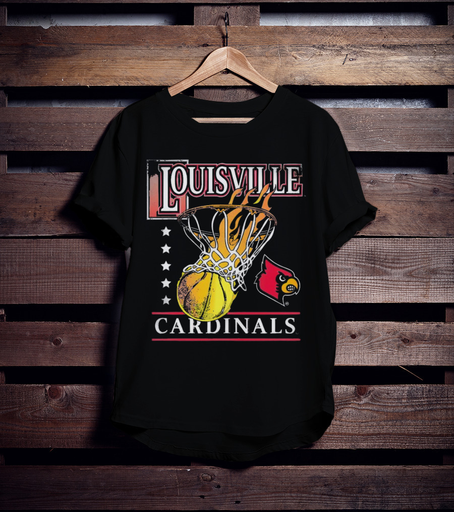 Louisville Cardinals Flaming Basketball Hoop T-Shirt