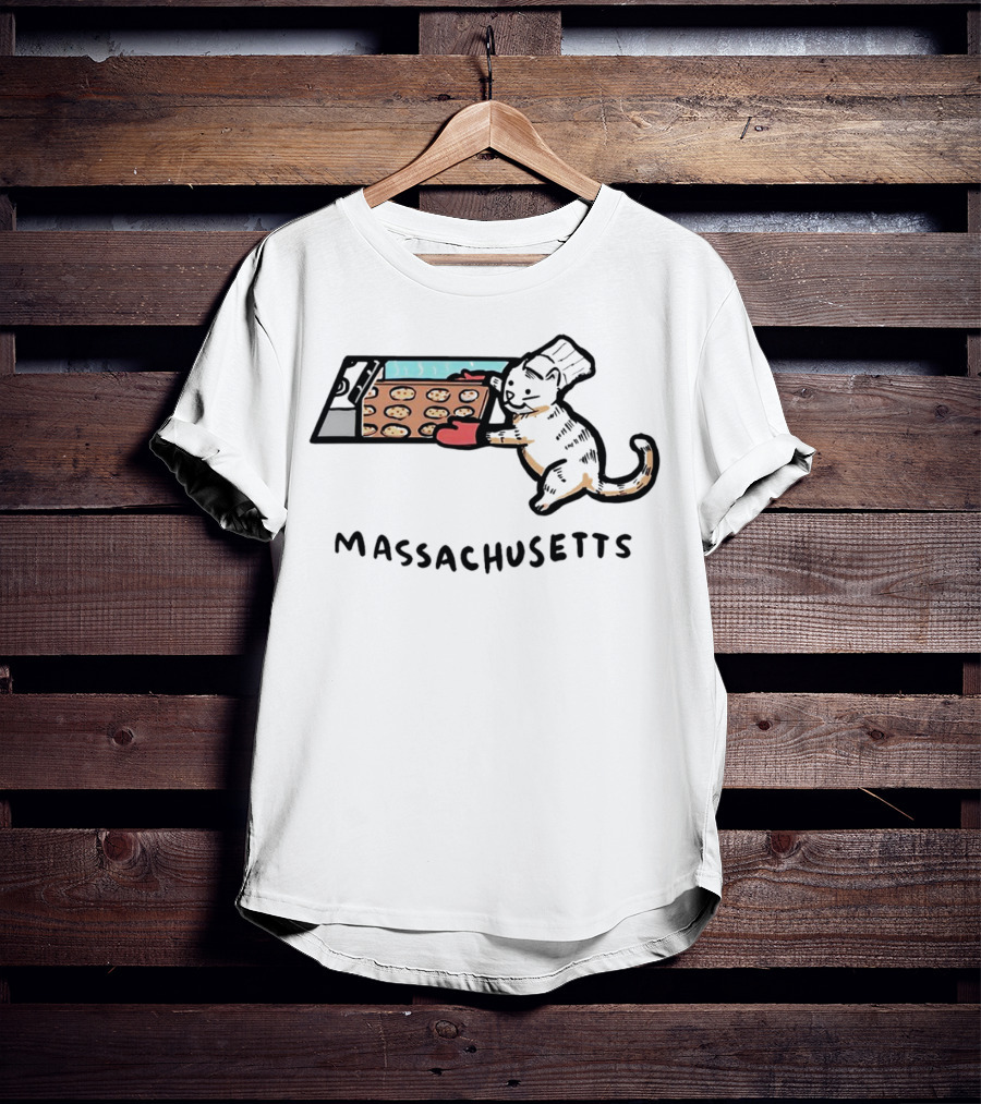Massachusetts Baking Cat Meowsachusetts Cookies Shirt made from 100% pre-shrunk ring-spun cotton, unisex regular fit based on U.S. standard sizing. The shirt is designed, cut, sewn, and printed in the United States. Available in sizes S-5XL.
