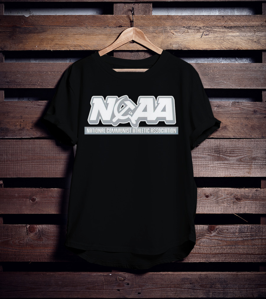 NCAA National Communist Athletic Association Hammer and Sickle Tennessee Fans Shirt made from 100% pre-shrunk ring-spun cotton, unisex regular fit based on U.S. standard sizing. The shirt is designed, cut, sewn, and printed in the United States. Available in sizes S-5XL.