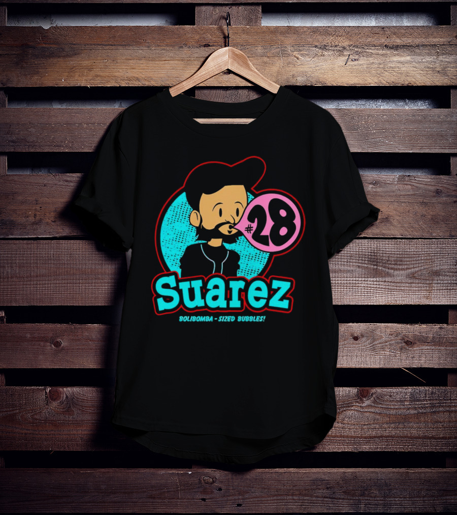 Suarez #28 Bolibomba Sized Bubbles Cartoon Cincinnati Reds Bubblegum Shirt made from 100% pre-shrunk ring-spun cotton, unisex regular fit based on U.S. standard sizing. The shirt is designed, cut, sewn, and printed in the United States. Available in sizes S-5XL.