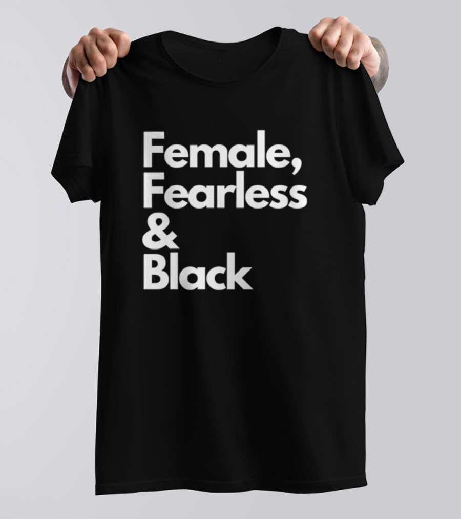 Female Fearless And Black Shirt made from 100% pre-shrunk ring-spun cotton, unisex regular fit based on U.S. standard sizing. The shirt is designed, cut, sewn, and printed in the United States. Available in sizes S-5XL.