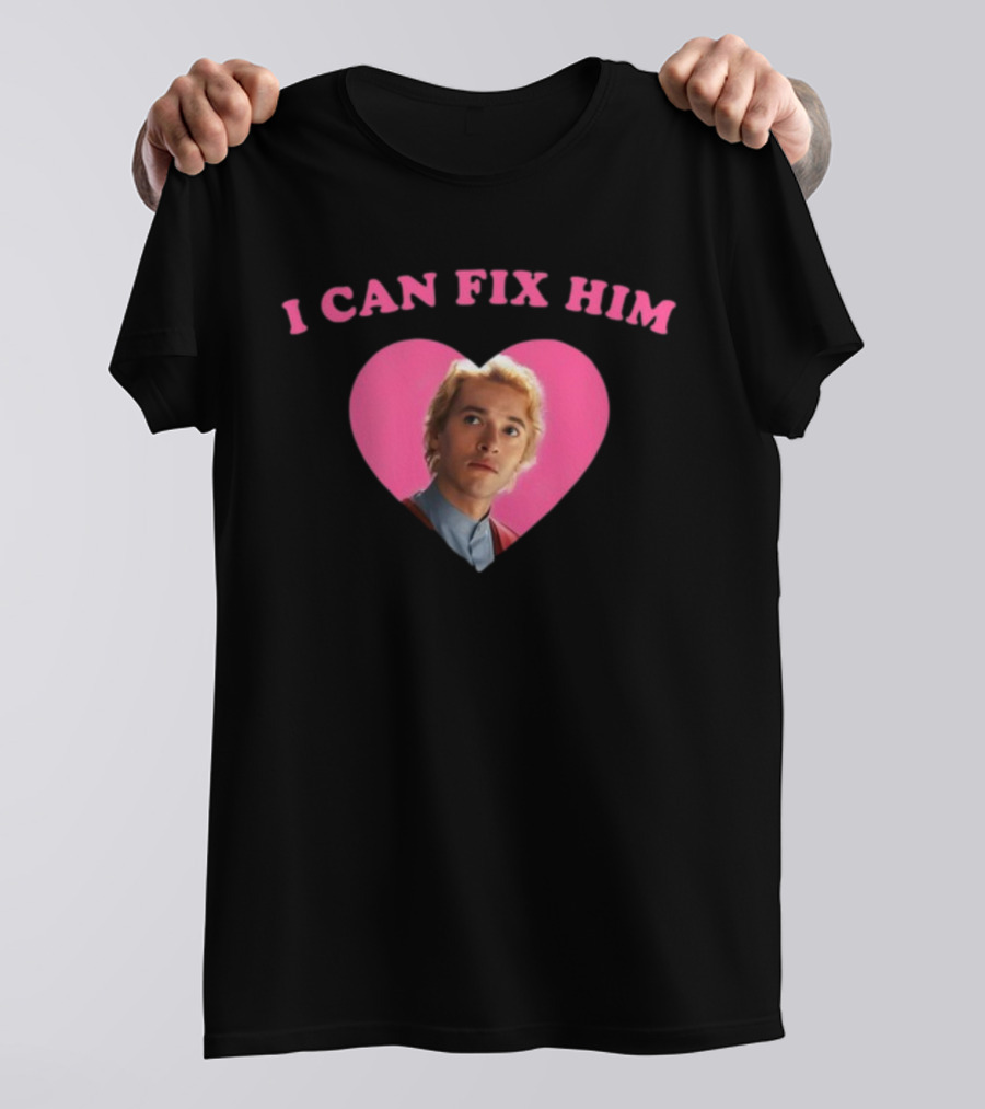 I Can Fix Him Heart Pink Background Tom Blyth Shirt made from 100% pre-shrunk ring-spun cotton, unisex regular fit based on U.S. standard sizing. The shirt is designed, cut, sewn, and printed in the United States. Available in sizes S-5XL.