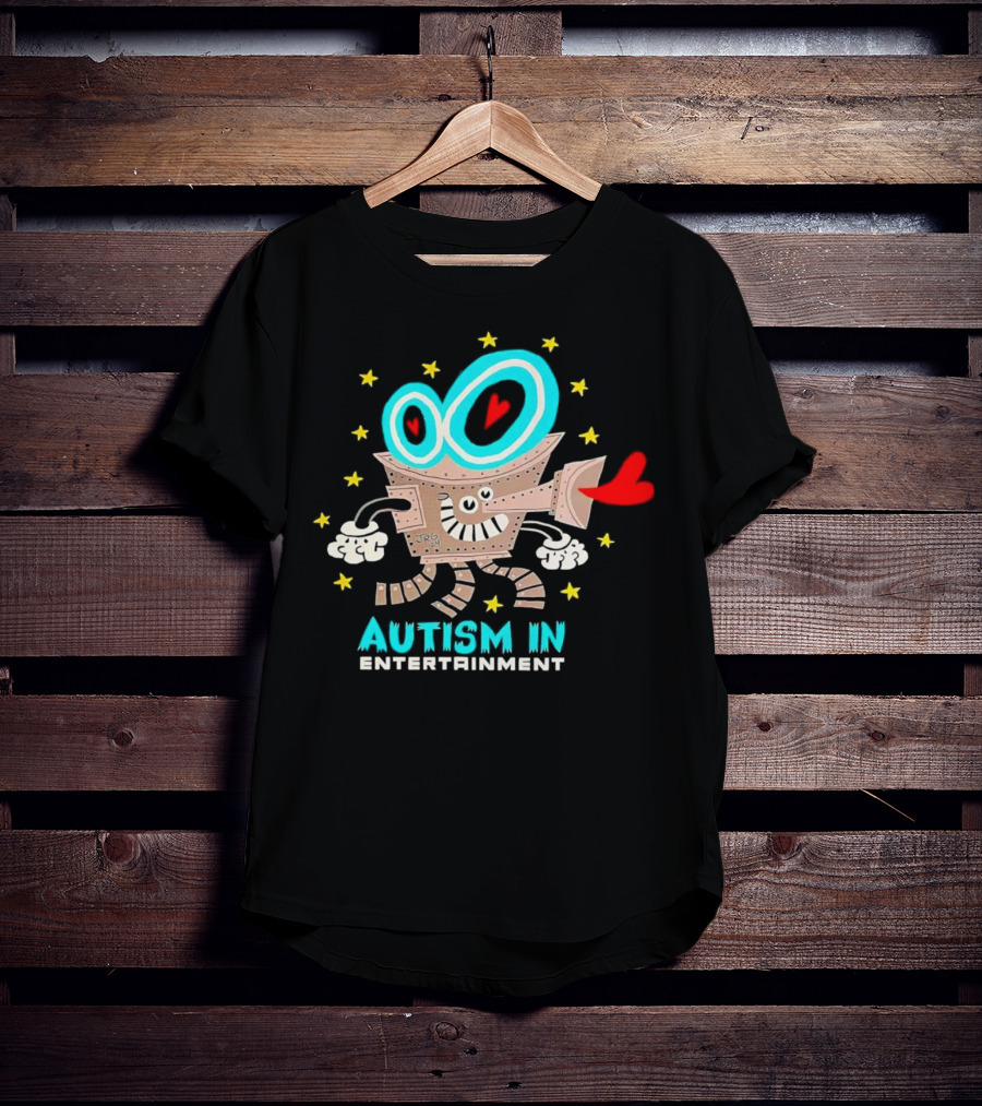 Autism in Entertainment Starry-Eyed Robot with Heart Projector Shirt made from 100% pre-shrunk ring-spun cotton, unisex regular fit based on U.S. standard sizing. The shirt is designed, cut, sewn, and printed in the United States. Available in sizes S-5XL.