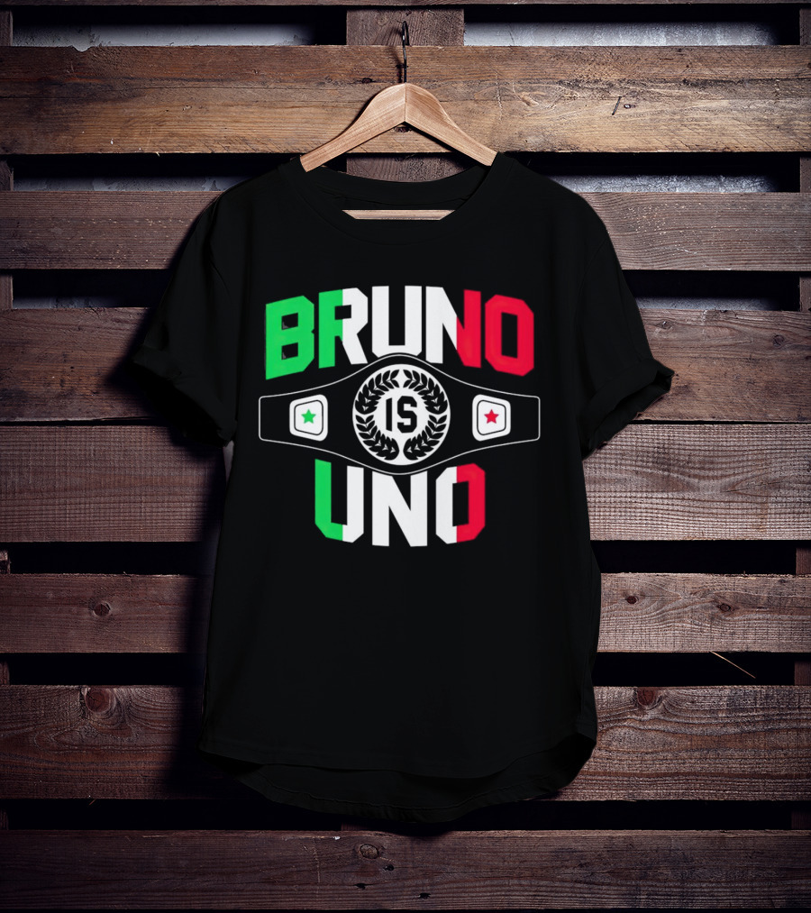 Bruno Is Uno Champion Belt Italian Colors Shirt made from 100% pre-shrunk ring-spun cotton, unisex regular fit based on U.S. standard sizing. The shirt is designed, cut, sewn, and printed in the United States. Available in sizes S-5XL.