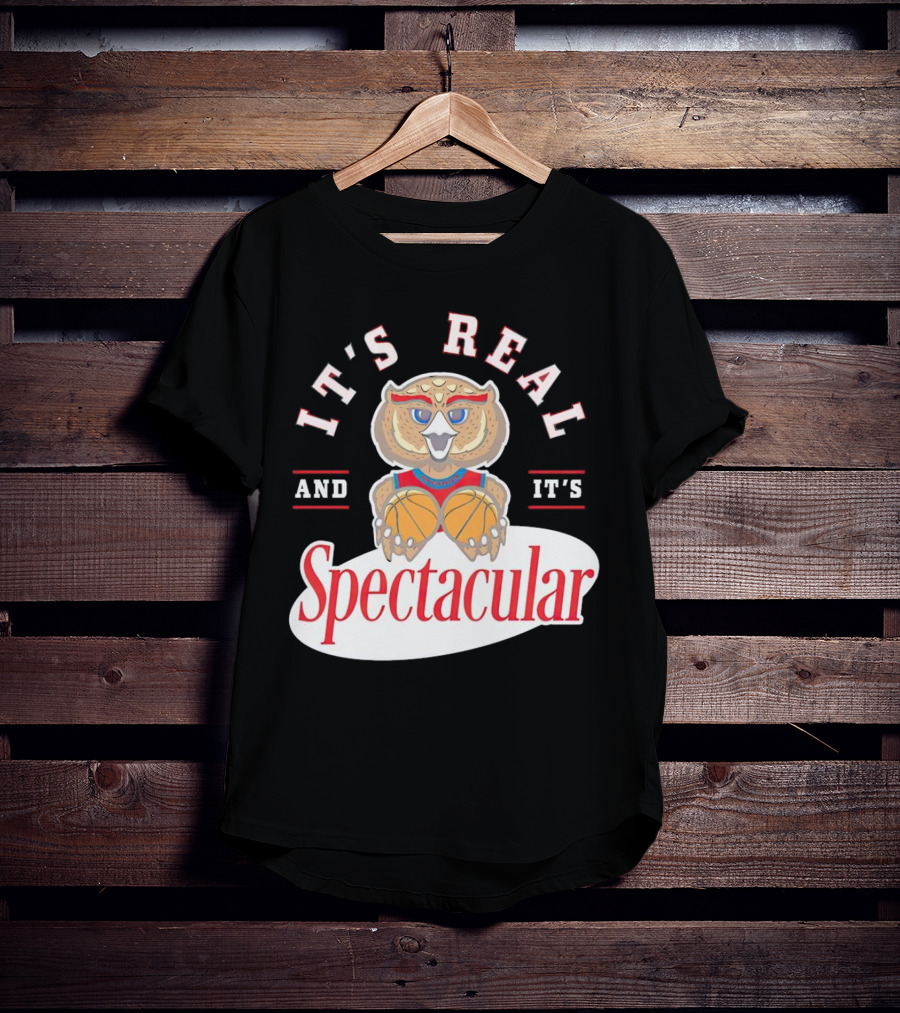 IT'S REAL AND IT'S SPECTACULAR BASKETBALL OWL WITH HOOP EYES Shirt made from 100% pre-shrunk ring-spun cotton, unisex regular fit based on U.S. standard sizing. The shirt is designed, cut, sewn, and printed in the United States. Available in sizes S-5XL.