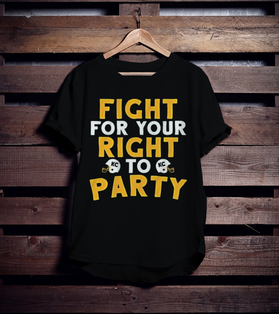 Kansas City Chiefs Fight For Your Right To Party KC Helmets Shirt made from 100% pre-shrunk ring-spun cotton, unisex regular fit based on U.S. standard sizing. The shirt is designed, cut, sewn, and printed in the United States. Available in sizes S-5XL.