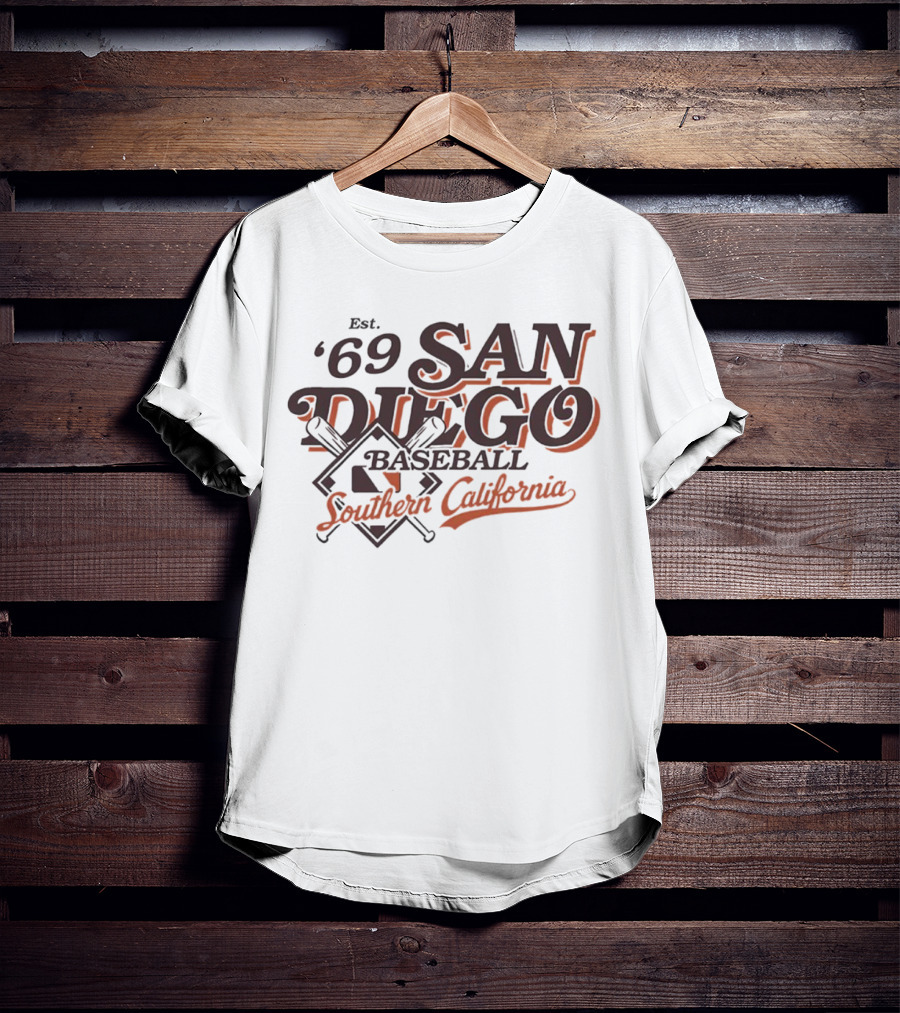 San Diego Baseball Est. '69 Southern California Shirt made from 100% pre-shrunk ring-spun cotton, unisex regular fit based on U.S. standard sizing. The shirt is designed, cut, sewn, and printed in the United States. Available in sizes S-5XL.