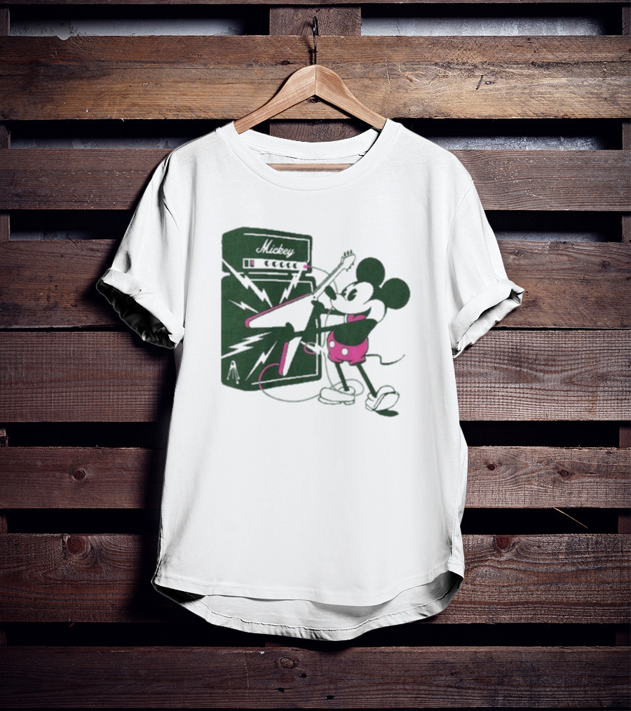 Rocker Mickey Electric Guitar Amplifier by Kii Arens Shirt made from 100% pre-shrunk ring-spun cotton, unisex regular fit based on U.S. standard sizing. The shirt is designed, cut, sewn, and printed in the United States. Available in sizes S-5XL.
