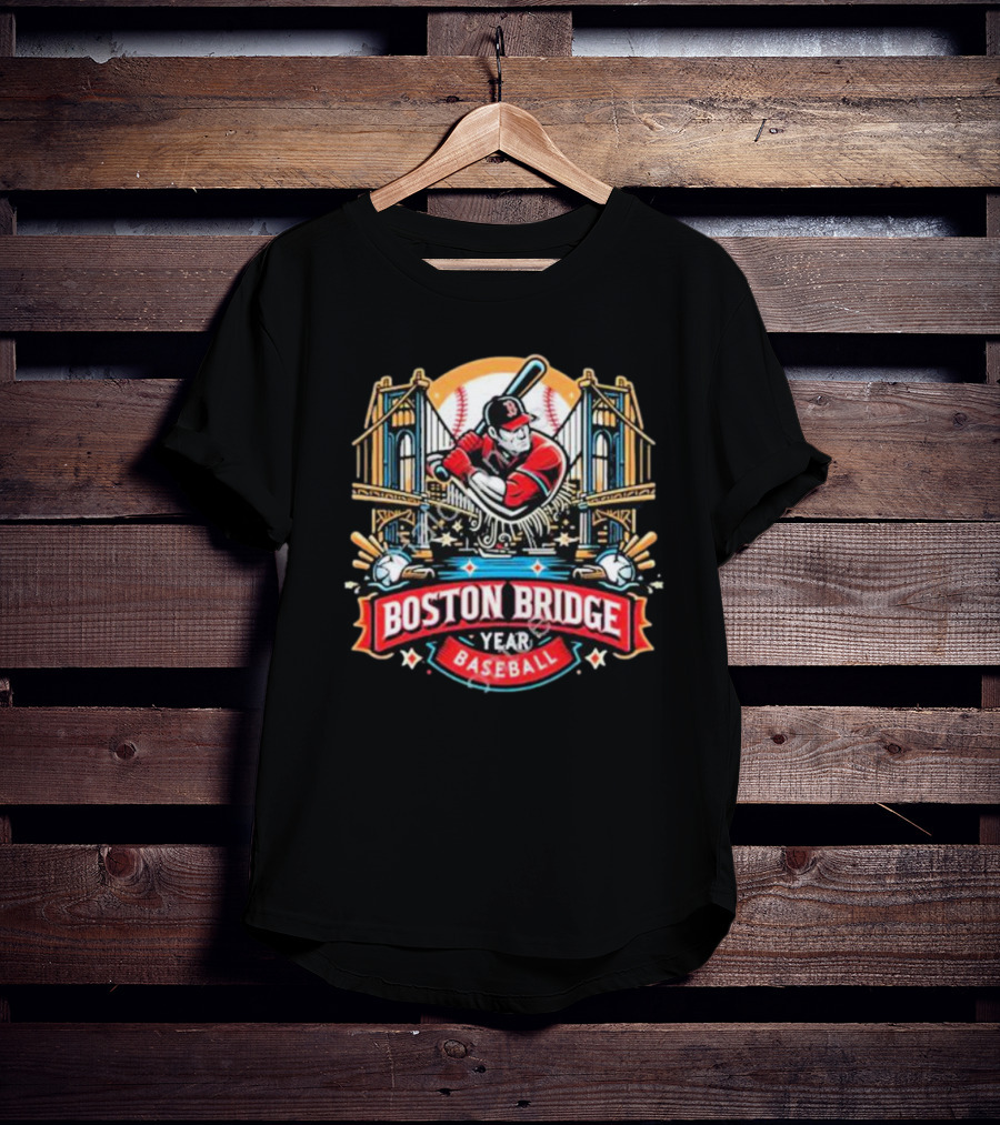 Shawn Palmerdesigns Boston Bridge Baseball Player Crossing Iconic Structure T-Shirt