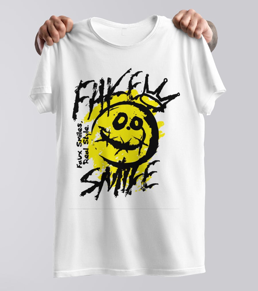 Fake Smile Faux Smiles Real Style Smiley Crown Shirt made from 100% pre-shrunk ring-spun cotton, unisex regular fit based on U.S. standard sizing. The shirt is designed, cut, sewn, and printed in the United States. Available in sizes S-5XL.