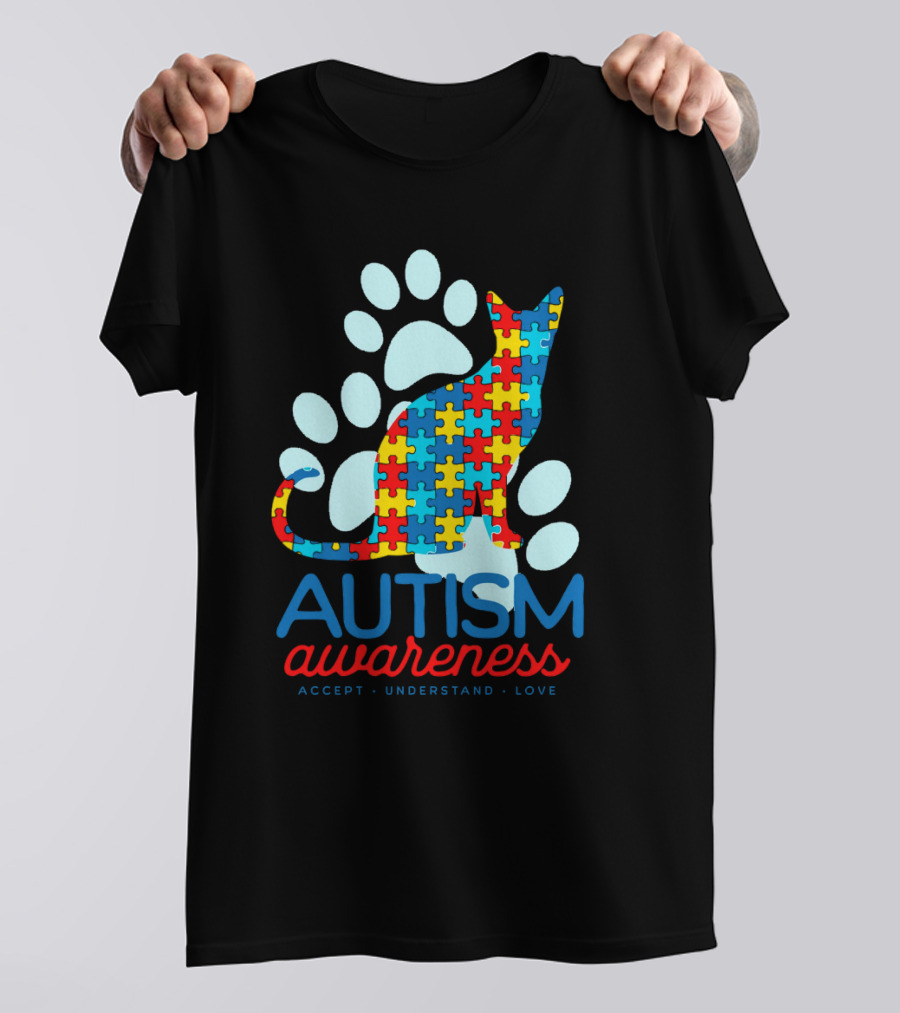 Autism Awareness Accept Understand Love Puzzle Cat Paw T-Shirt