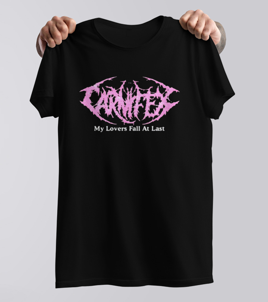 Carnifex My Lovers Fall At Last Pink Shirt made from 100% pre-shrunk ring-spun cotton, unisex regular fit based on U.S. standard sizing. The shirt is designed, cut, sewn, and printed in the United States. Available in sizes S-5XL.