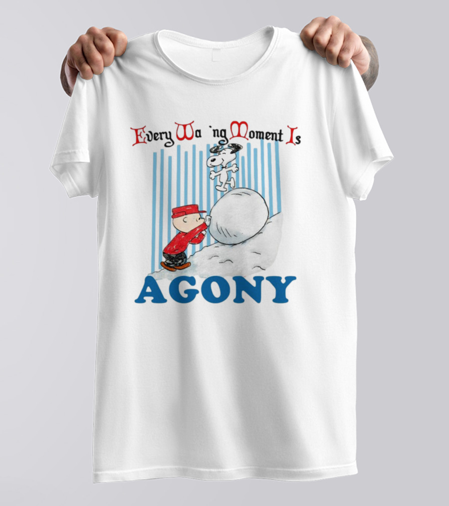 Every Waking Moment Is Agony Sisyphus Dog Cartoon Snowball Shirt made from 100% pre-shrunk ring-spun cotton, unisex regular fit based on U.S. standard sizing. The shirt is designed, cut, sewn, and printed in the United States. Available in sizes S-5XL.