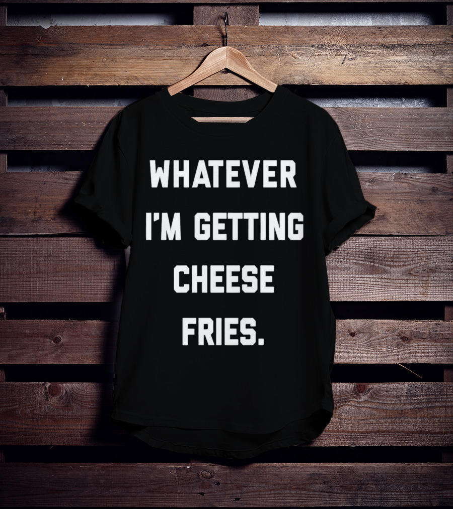 Whatever I'm Getting Cheese Fries Shirt made from 100% pre-shrunk ring-spun cotton, unisex regular fit based on U.S. standard sizing. The shirt is designed, cut, sewn, and printed in the United States. Available in sizes S-5XL.