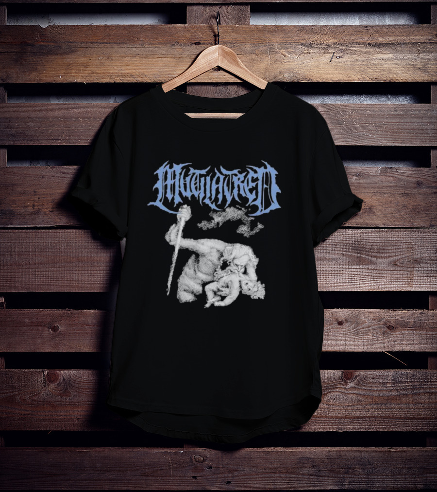 Mutilatred Eroded Brain Grim Figure and Child Fantasy Shirt made from 100% pre-shrunk ring-spun cotton, unisex regular fit based on U.S. standard sizing. The shirt is designed, cut, sewn, and printed in the United States. Available in sizes S-5XL.