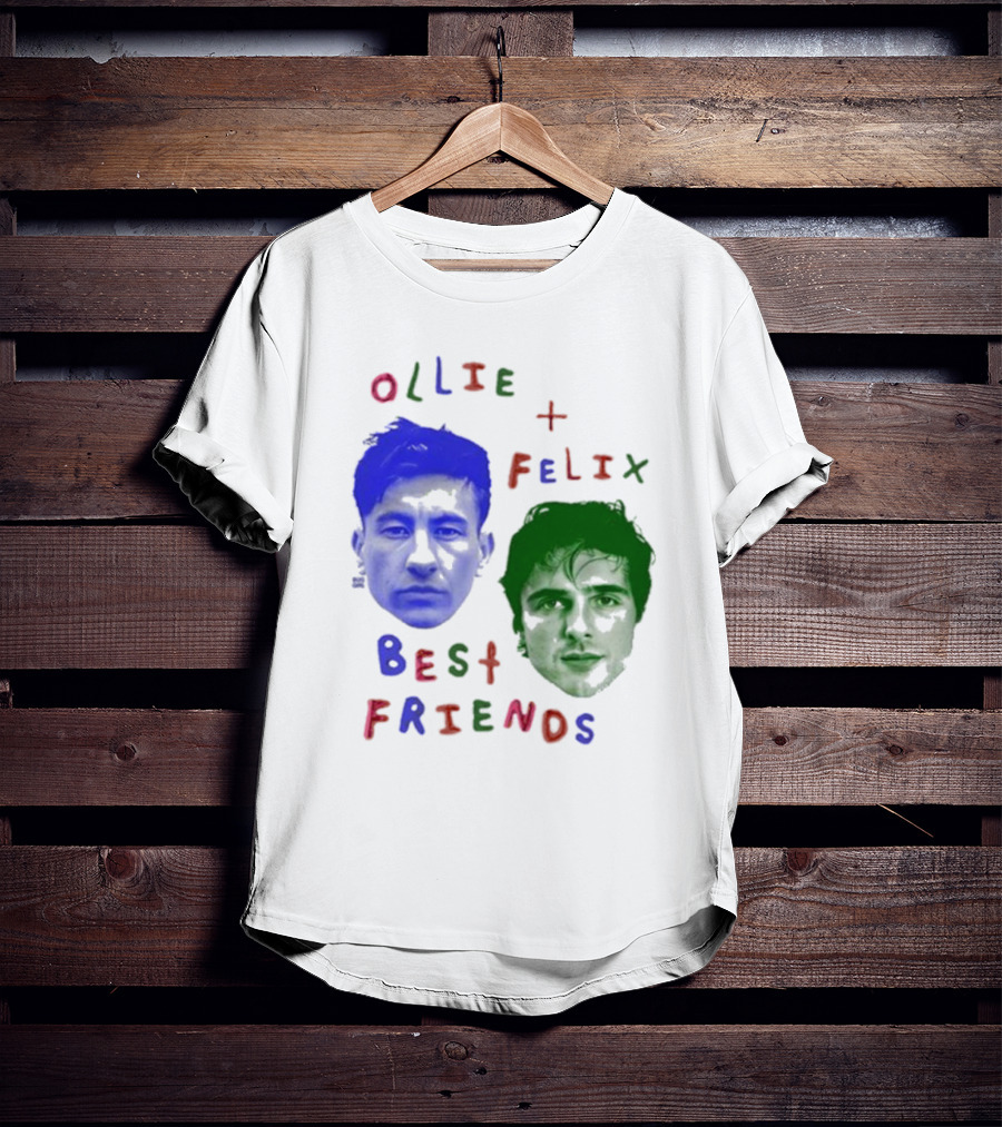 OLLIE + FELIX BEST FRIENDS Shirt made from 100% pre-shrunk ring-spun cotton, unisex regular fit based on U.S. standard sizing. The shirt is designed, cut, sewn, and printed in the United States. Available in sizes S-5XL.