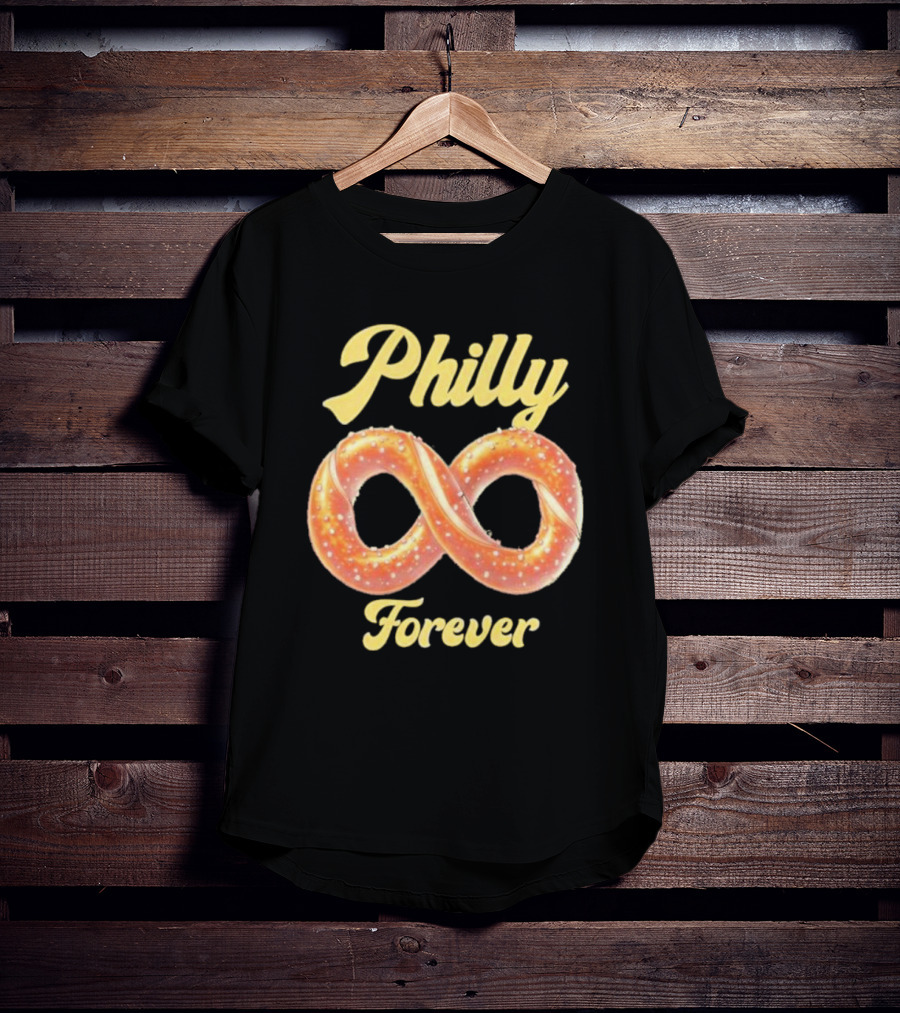 Philly Forever Pretzel Infinity Shirt made from 100% pre-shrunk ring-spun cotton, unisex regular fit based on U.S. standard sizing. The shirt is designed, cut, sewn, and printed in the United States. Available in sizes S-5XL.