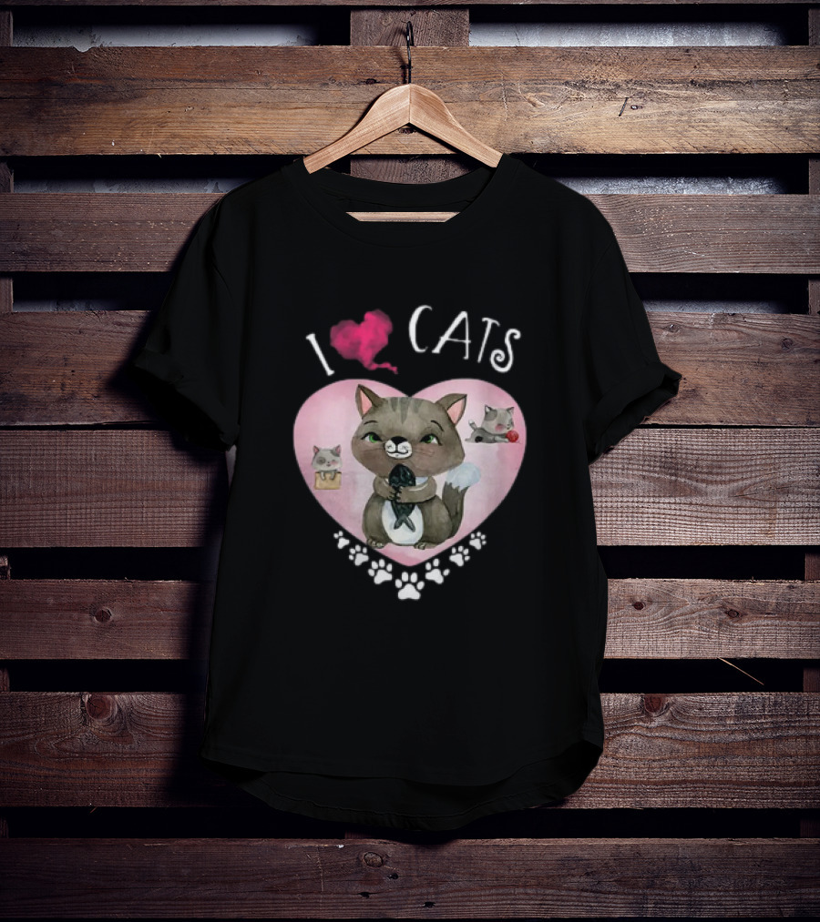 I Love Cats Heart and Paw Prints 365 Womens Cats I Love My Cats Shirt made from 100% pre-shrunk ring-spun cotton, unisex regular fit based on U.S. standard sizing. The shirt is designed, cut, sewn, and printed in the United States. Available in sizes S-5XL.