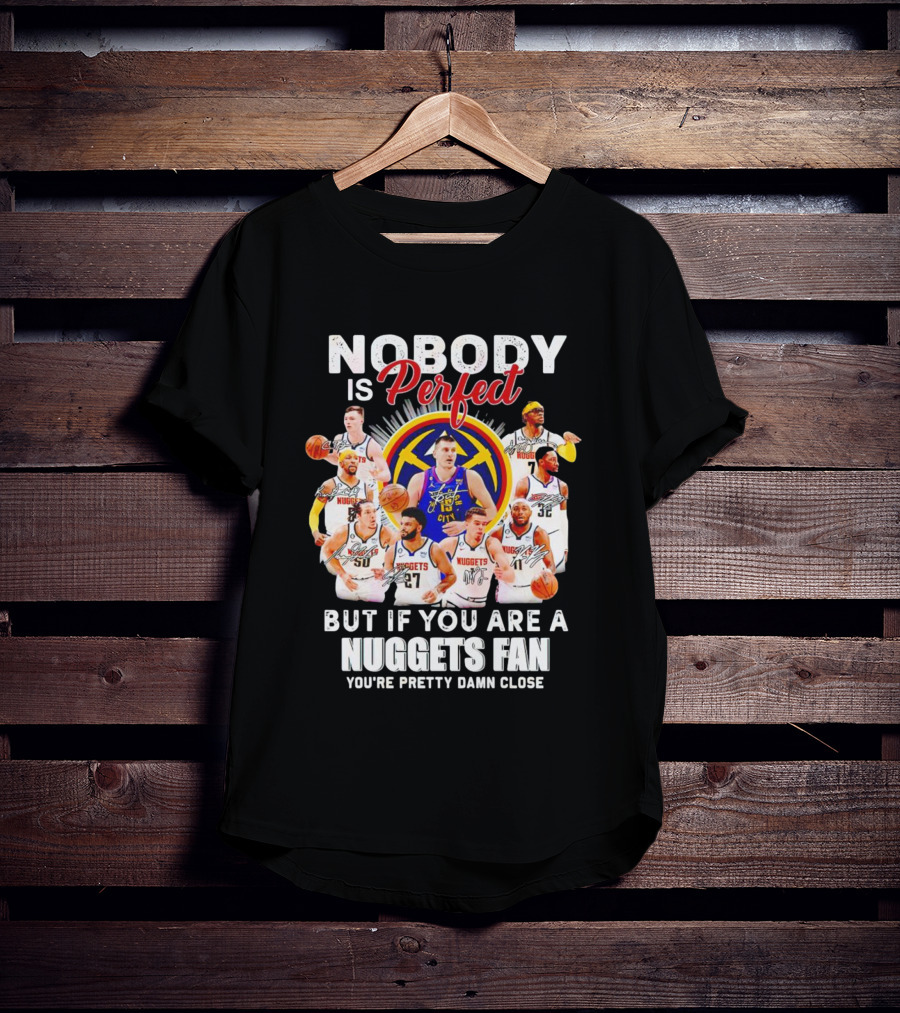 Nuggets Fan Perfection Nobody Is Perfect Basketball Team Legends Shirt made from 100% pre-shrunk ring-spun cotton, unisex regular fit based on U.S. standard sizing. The shirt is designed, cut, sewn, and printed in the United States. Available in sizes S-5XL.