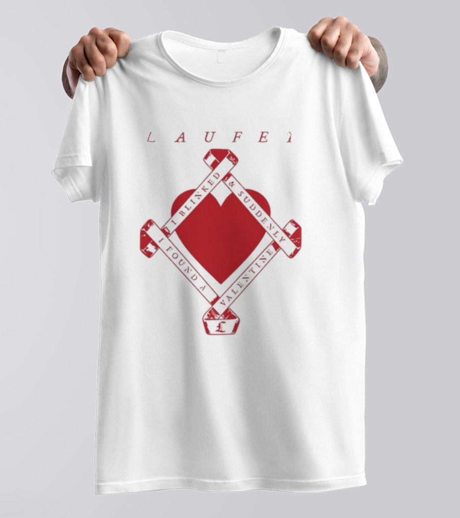 Laufey I Blinked And Suddenly I Found A Valentine Red Heart Shirt made from 100% pre-shrunk ring-spun cotton, unisex regular fit based on U.S. standard sizing. The shirt is designed, cut, sewn, and printed in the United States. Available in sizes S-5XL.