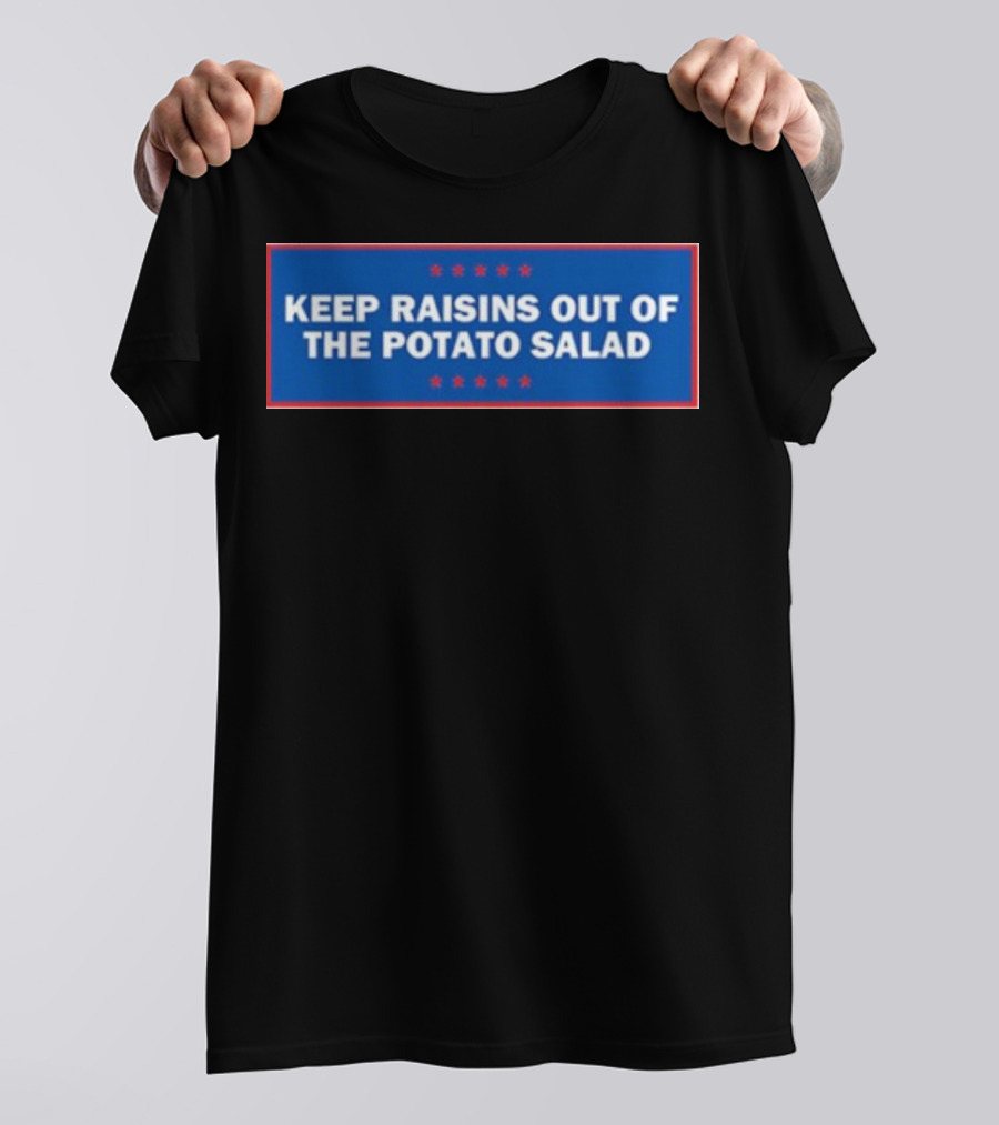 Middleclassfancy Keep Raisins Out Of The Potato Salad Bold White Text On Blue With Red Stars T-Shirt