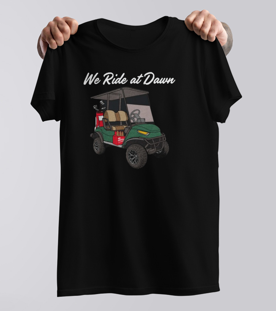 Middleclassfancy We Ride At Dawn Golf Cart With Clubs And Cooler T-Shirt