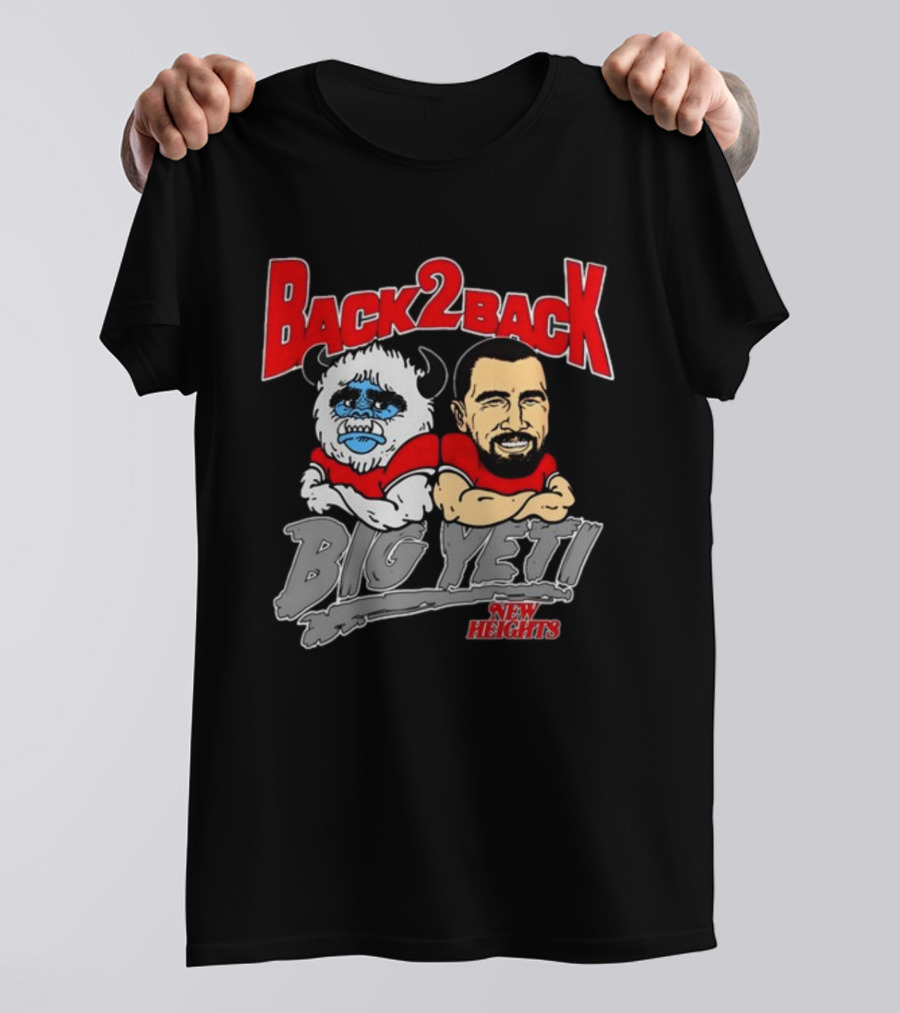 Back 2 Back Big Yeti New Heights Shirt made from 100% pre-shrunk ring-spun cotton, unisex regular fit based on U.S. standard sizing. The shirt is designed, cut, sewn, and printed in the United States. Available in sizes S-5XL.