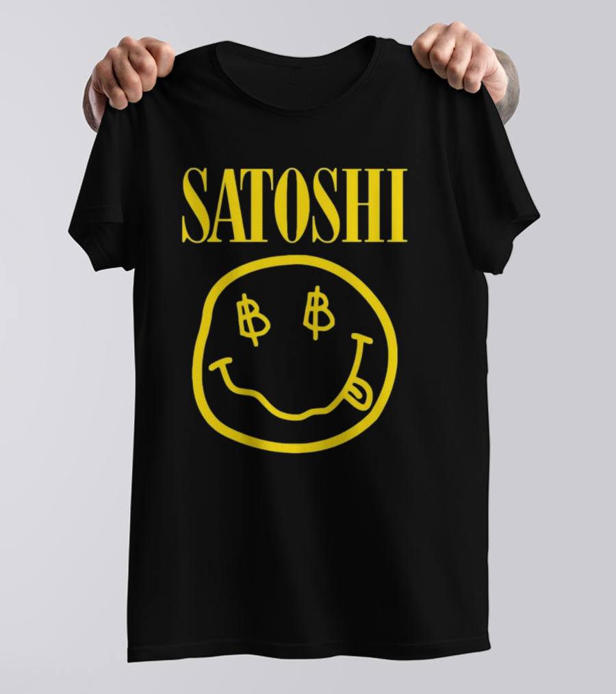 SATOSHI Smiley Face With Bitcoin Symbols T-Shirt