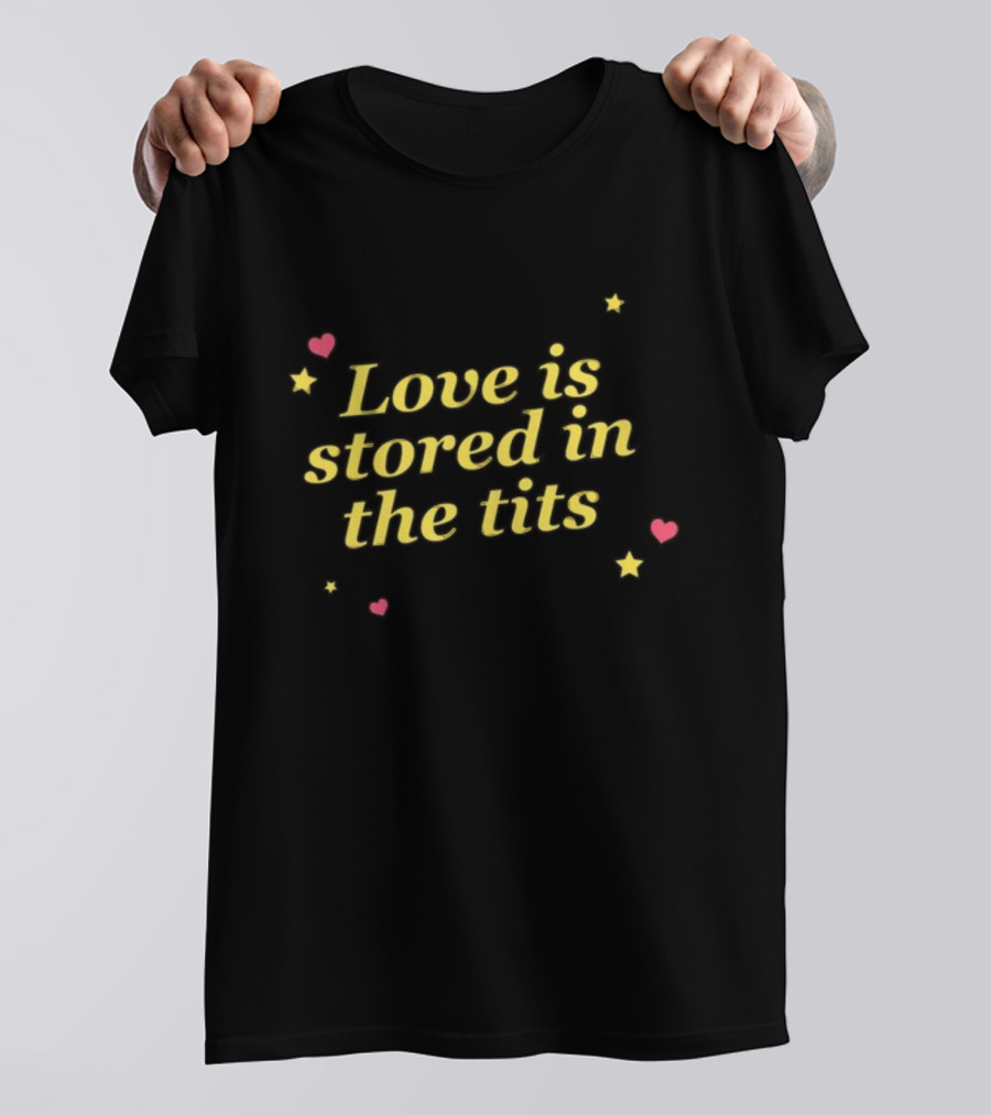 Gotfunny Love Is Stored In The Tits With Hearts And Stars T-Shirt