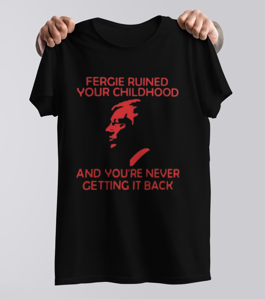 Fergie Ruined Your Childhood You're Never Getting It Back Red Silhouette Profile Shirt made from 100% pre-shrunk ring-spun cotton, unisex regular fit based on U.S. standard sizing. The shirt is designed, cut, sewn, and printed in the United States. Available in sizes S-5XL.
