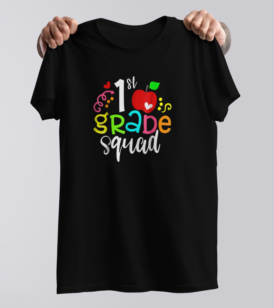 1st Grade Squad First Grade Back to School Teacher Gifts Men Shirt made from 100% pre-shrunk ring-spun cotton, unisex regular fit based on U.S. standard sizing. The shirt is designed, cut, sewn, and printed in the United States. Available in sizes S-5XL.