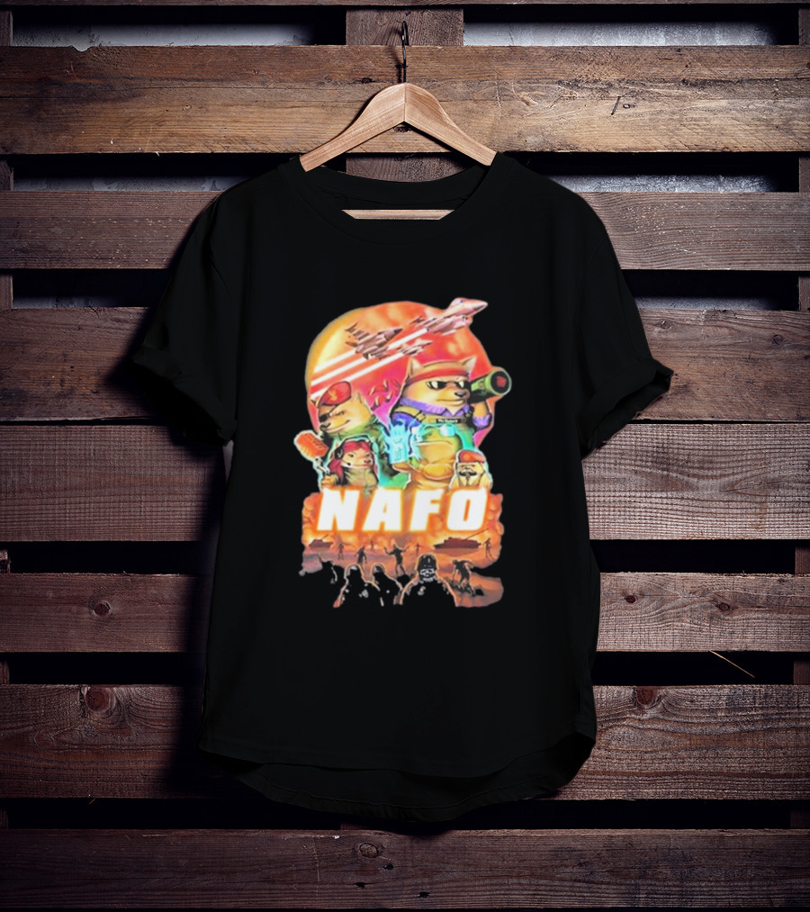 Bösartiger Nafo Warriors X Grandpa Yurko Fighter Jets and Soldiers Battle Scene Shirt made from 100% pre-shrunk ring-spun cotton, unisex regular fit based on U.S. standard sizing. The shirt is designed, cut, sewn, and printed in the United States. Available in sizes S-5XL.