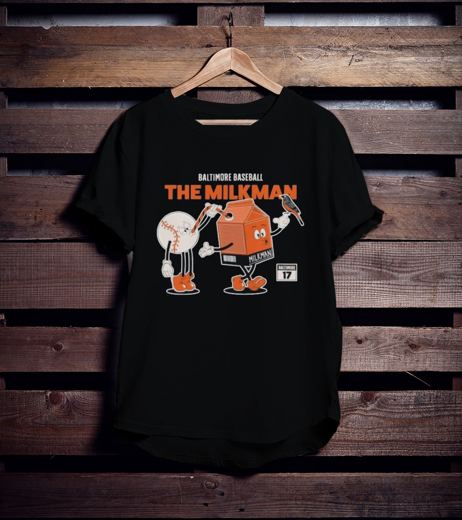 Baltimore Baseball The Milkman Cartoon Character with Baseball Baltimore 17 Shirt made from 100% pre-shrunk ring-spun cotton, unisex regular fit based on U.S. standard sizing. The shirt is designed, cut, sewn, and printed in the United States. Available in sizes S-5XL.