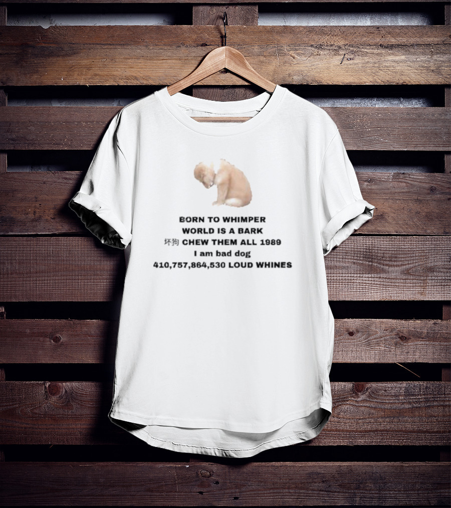 Born To Whimper World Is A Bark Chew Them All 1989 I Am Bad Dog Loud Whines Shirt made from 100% pre-shrunk ring-spun cotton, unisex regular fit based on U.S. standard sizing. The shirt is designed, cut, sewn, and printed in the United States. Available in sizes S-5XL.