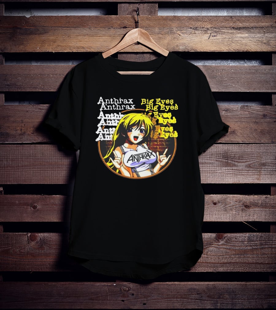 Anthrax Big Eyes Vintage Manga Shirt made from 100% pre-shrunk ring-spun cotton, unisex regular fit based on U.S. standard sizing. The shirt is designed, cut, sewn, and printed in the United States. Available in sizes S-5XL.