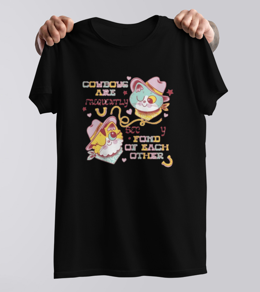 COWBOYS ARE FREQUENTLY FOND OF EACH OTHER COWBOY CATS BY PINKGABBERCAT Shirt made from 100% pre-shrunk ring-spun cotton, unisex regular fit based on U.S. standard sizing. The shirt is designed, cut, sewn, and printed in the United States. Available in sizes S-5XL.