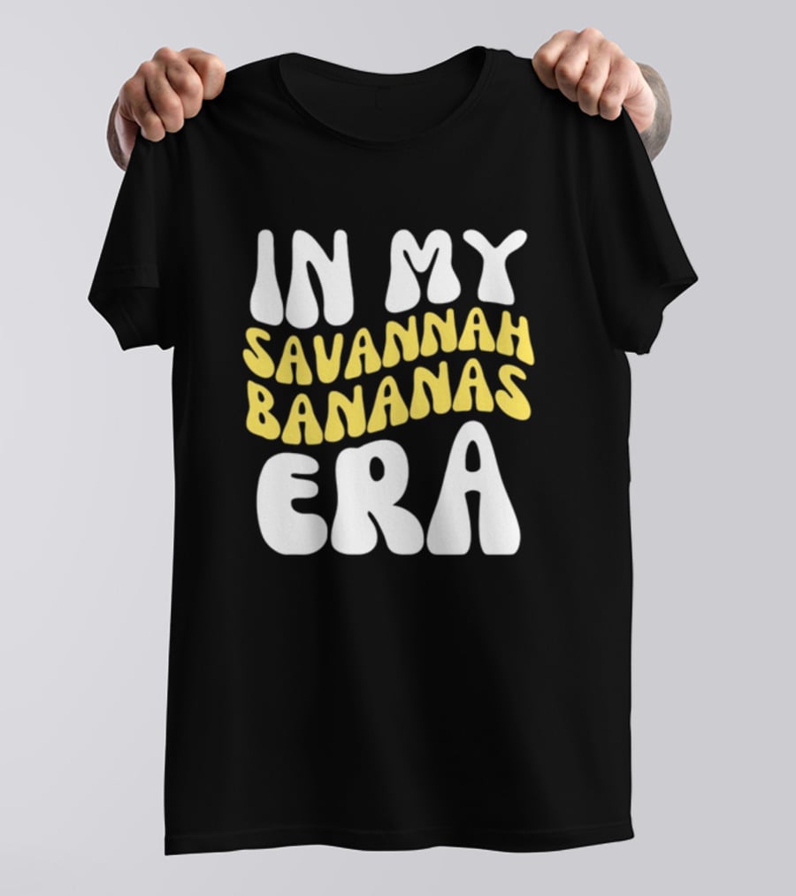 Juliana Moore In My Savannah Bananas Era Shirt made from 100% pre-shrunk ring-spun cotton, unisex regular fit based on U.S. standard sizing. The shirt is designed, cut, sewn, and printed in the United States. Available in sizes S-5XL.