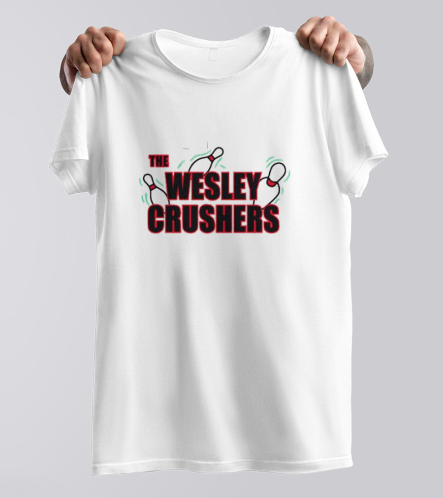 Sheldon The Wesley Crushers Bowling Team Shirt made from 100% pre-shrunk ring-spun cotton, unisex regular fit based on U.S. standard sizing. The shirt is designed, cut, sewn, and printed in the United States. Available in sizes S-5XL.