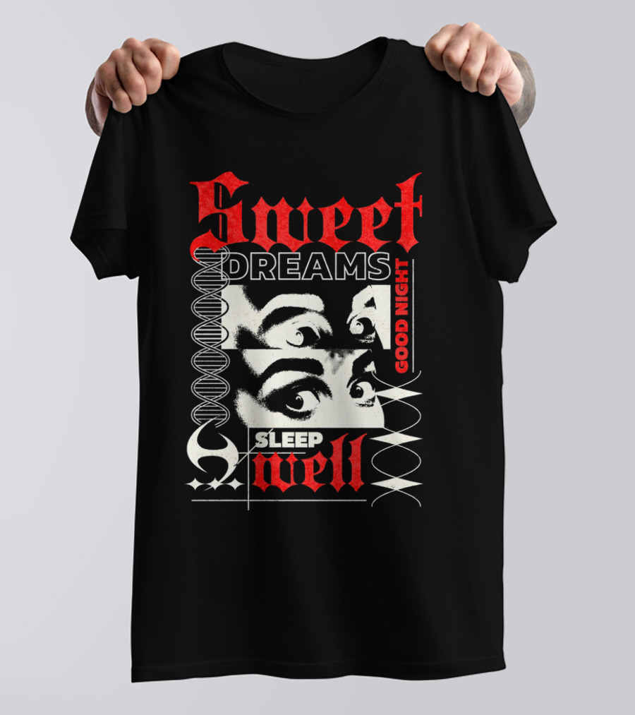 Sweet Dreams Good Night Sleep Well Grunge Eyes Shirt made from 100% pre-shrunk ring-spun cotton, unisex regular fit based on U.S. standard sizing. The shirt is designed, cut, sewn, and printed in the United States. Available in sizes S-5XL.