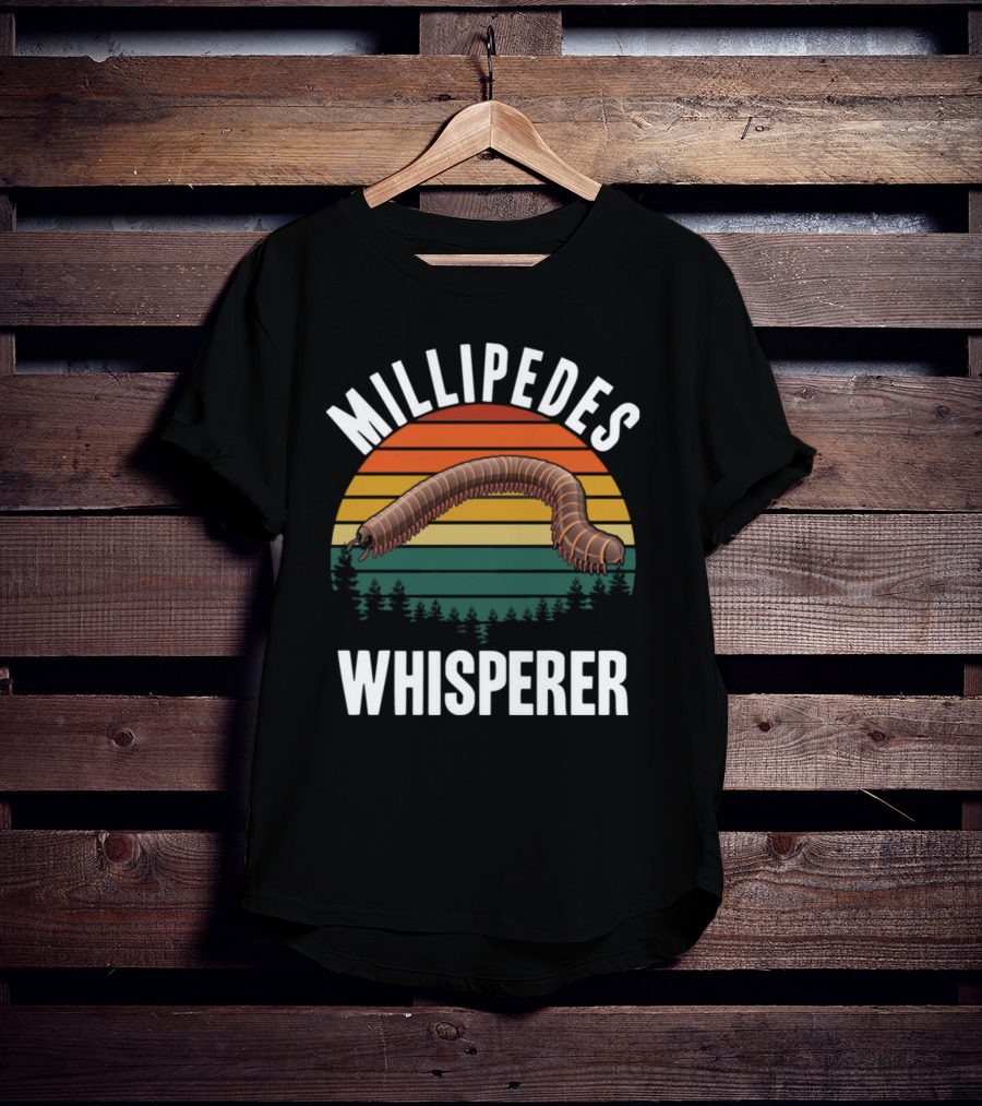 Millipedes Whisperer Vintage Sunset Forest Shirt made from 100% pre-shrunk ring-spun cotton, unisex regular fit based on U.S. standard sizing. The shirt is designed, cut, sewn, and printed in the United States. Available in sizes S-5XL.