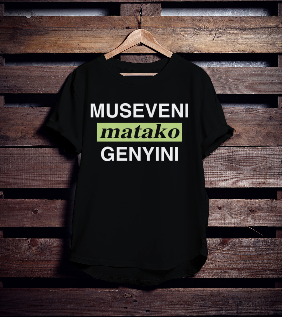 Museveni Matako Genyini Shirt made from 100% pre-shrunk ring-spun cotton, unisex regular fit based on U.S. standard sizing. The shirt is designed, cut, sewn, and printed in the United States. Available in sizes S-5XL.